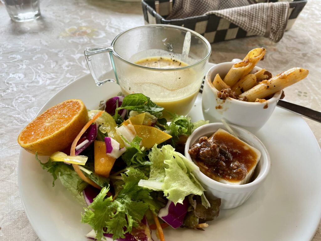 メインの前にまずは前菜の盛り合わせのプレートがやってきます。ボリューム満点!その後にメインがやってきます。