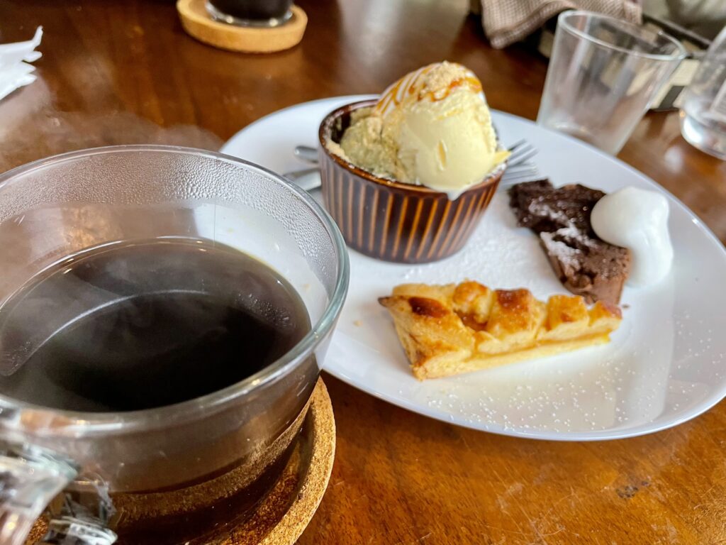 例のごとく何を食べても美味しい平和な舌を持つわたくしは、日替わりのメニューを注文することが多いです。そして何を食べても本格的な味で美味しいんです。(説得力が無いかも知れませんが…。)そして一人分のデザートプレートを注文することが多いです。(ボリュームが多いので二人分は食べきれません)