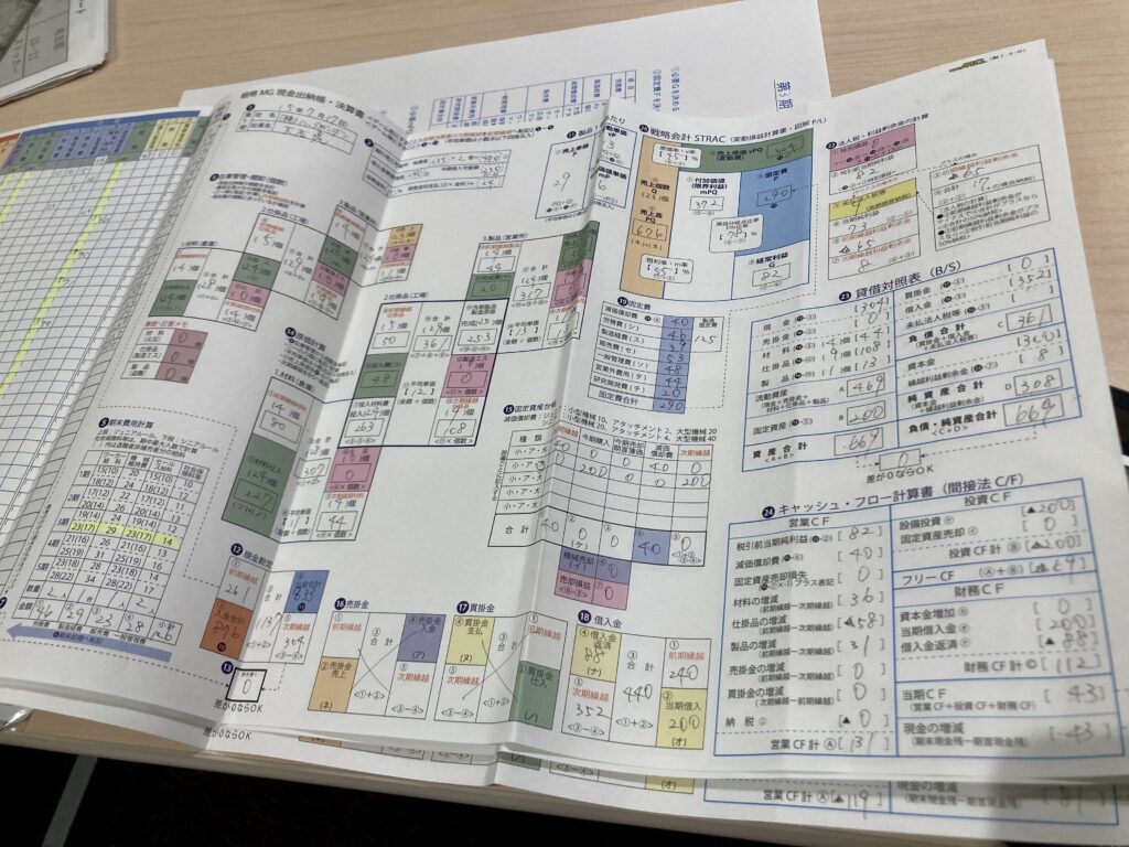 しかも座学ではなく、ボードゲームを使って経営ゲームをします。ゲームを進行しながら出納帳を記入し、ゲームが終わったら期末費用を計算して棚卸しをして、原価計算、固定費の計算、財務三表を自分で作成する体験型のセミナーです。