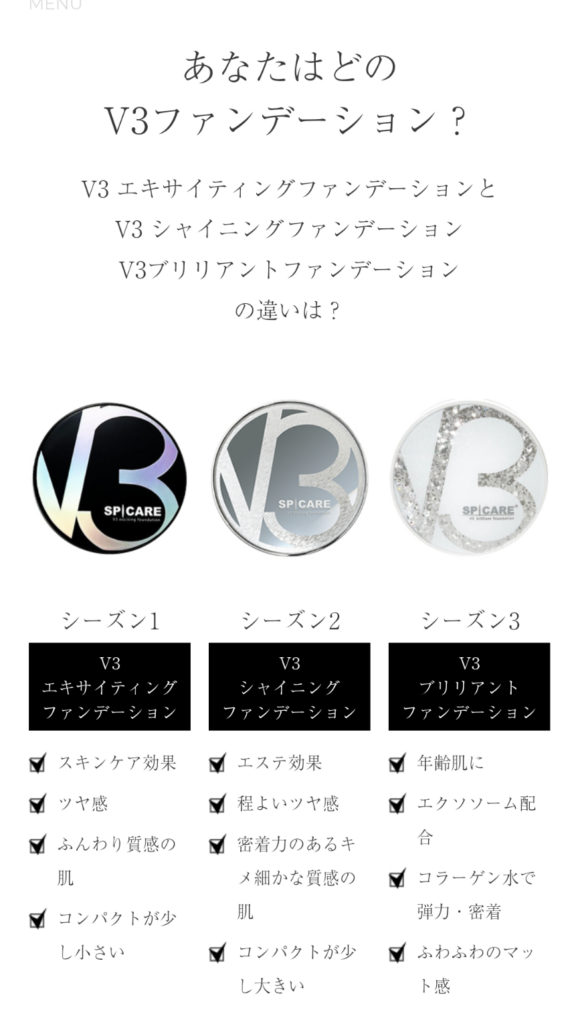 とあるサイトにV3シリーズの比較があったので貼り付けておきます。