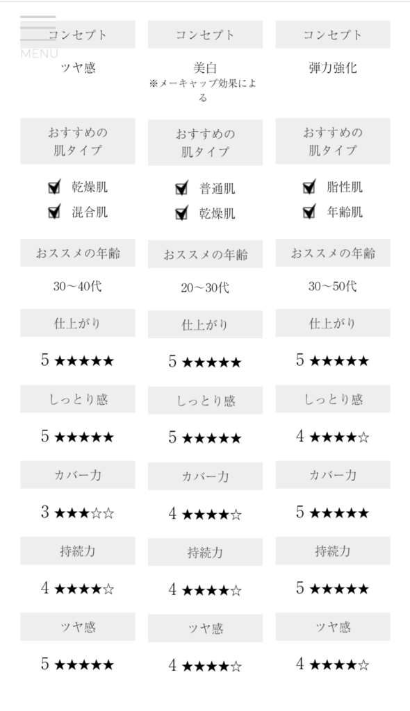 以前にあったV3ファンデーションよりも、ツヤ感は弱まり少し薄付きかな?ですが、ナチュラル派にはちょうどいい感じです。塗った後の肌は相変わらずキレイに見えます✨ そして崩れにくい気がします。