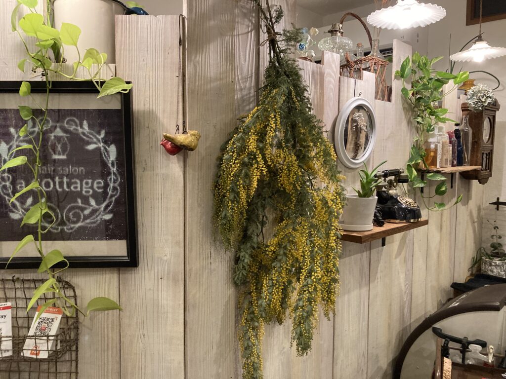 先日はお客様から立派なアカシア(ミモザ)の花束を頂いたので、店内にディスプレイさせていただきました(^^)