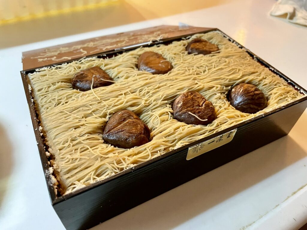 お口直しに、以前ふるさと納税のネタで紹介した栗きんとんモンブランの現物を紹介して終わります。