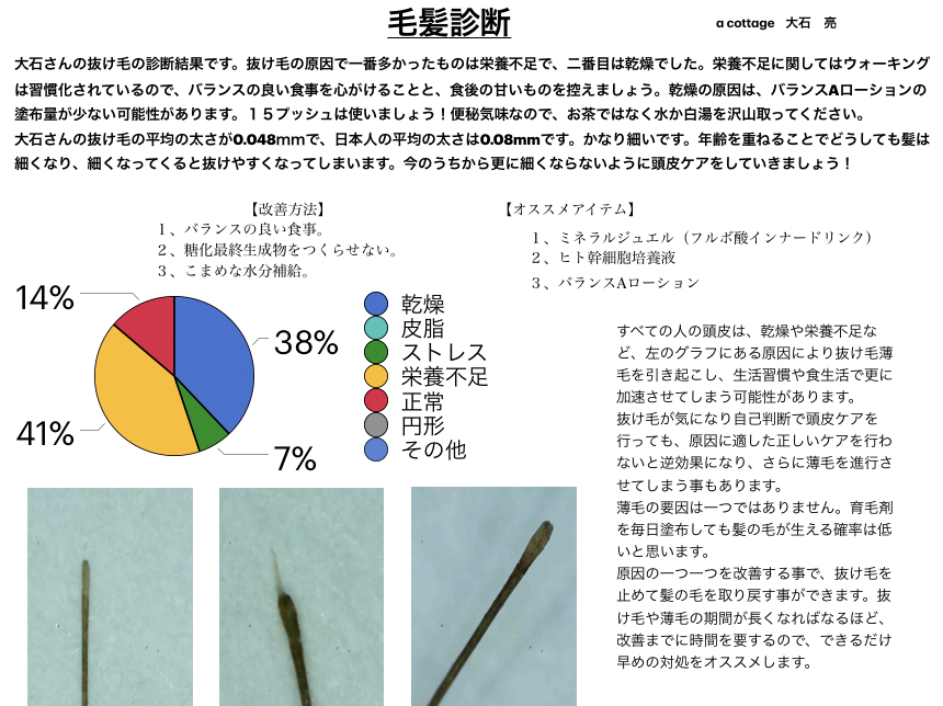 おかげさまで抜け毛診断の依頼が週に一人二人あります。 久しぶりに自分の診断もやりました。栄養不足が一番の理由は前回と同じ(T-T) ウォーキングは続いているので、次...